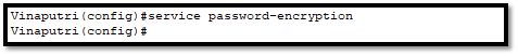 Selanjutnya kita akan mengecek lagi dengan show run, maka akan tampil kalimat Service password-encryption, yang artinya tipe password juga akan ter-enkripsi. Bisa dilihat dibagian enable password akan muncul bagian enkripsinya.
