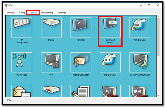 Setelah itu coba test Ping antar client, dengan cara masuk ke Tab Desktop yang tadi lalu klik Command Prompt , setelah itu lakukan ping.
