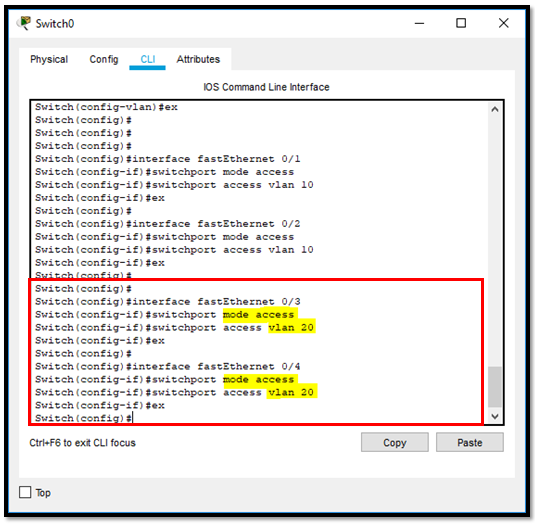 • Fa0/3 dan Fa0/4 => VLAN 20