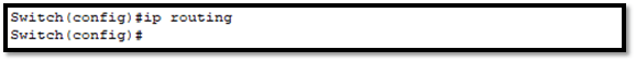 Selanjutnya kita ketikkan perintah “ip routing”, Karena perintah ini digunakan untuk menghubungkan antar vlan.
