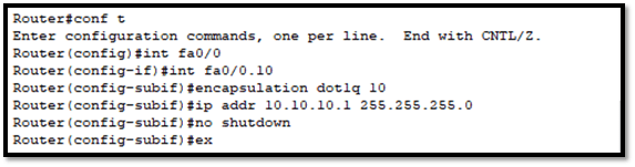 - Int Fa0/0.10 = angka “10” itu adalah nomer dari vlan nya. Jadi kita akan membuat sub-interface untuk vlan 10