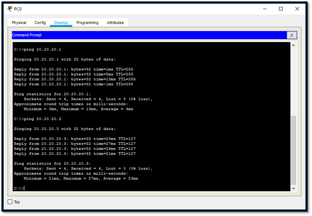 Kemudian kita test ping, pertama kita test ping ke gateway/router terlebih dulu. Jika belum bisa, coba ping lagi dan lagi. Jika sudah dapat reply semua, selanjutnya kita test ping antar Client yang beda Vlan. Jika belum berhasil berarti ada kesalahan dalam konfigurasi.
