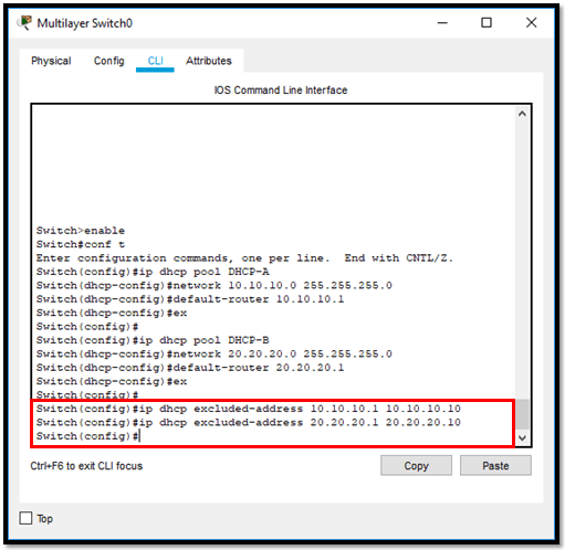 Dengan perintah diatas, maka VLAN 10 akan mendapat IP mulai dari 10.10.10.11 dan VLAN 20 akan mendapat IP mulai dari 20.20.20.11.