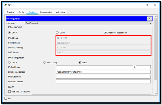 Bisa kita lihat client sudah mendapatkan IP secara otomatis, yaitu 10.10.10.11 dan konfigurasi di lab kali ini sudah berhasil.