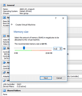 2. Disini kita akan mengisi ukuran memori (RAM), tidak usah terlalu besar cukup 512MB saja. Jika sudah klik Next.