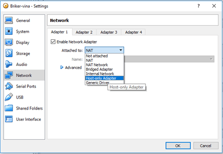 6. Disini kita atur networknya, dan kita pilih “Host-only Adapter”,Jika sudah klik OK.