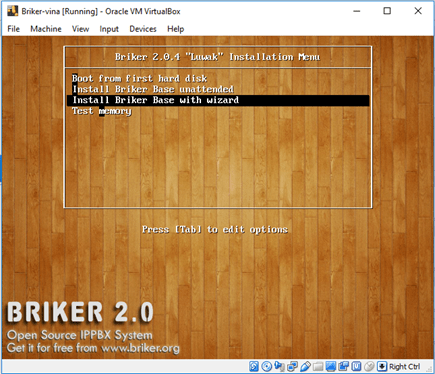8. Apabila sudah ada tampilan seperti ini, maka kita pilih “Install Briker Base With Wizard”, jika sudah lalu tekan Enter.