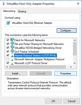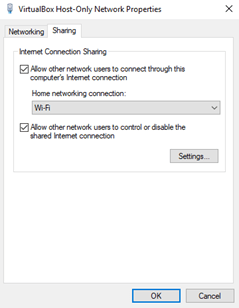 14. Jika sudah terhubung, sharingkan jaringan server yang ada di virtual box. Caranya buka “Control Panel” => “internet and sharing center” => “change adapter setting” => klik kanan pada Virtualbox-host only network” => “properties” => klik “sharing” lalu atur seperti dibawah ini.