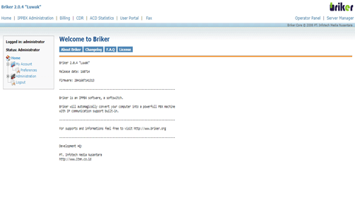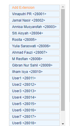 Fitur ini berkaitan dengan account pada IPPBX. Penambahan, penghapusan dan pergantian data-data account dapat dilakukan disini. Setiap account yang ditambahkan disini berlaku sebagai extension IPPBX. Bisa dikatakan bahwa extension adalah user yang akan menggunakan layanan Briker.