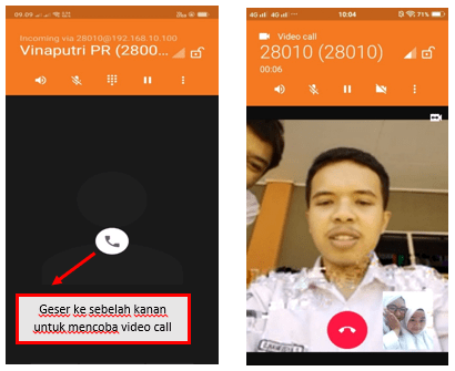 7. Jika pengujian panggilan pada client telah berhasil, selanjutnya kita akan mencoba panggilan Video Call pada Client. Dengan cara: