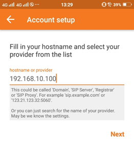 Username @ PBX/VoIP provider : 2808@192.168.10.100